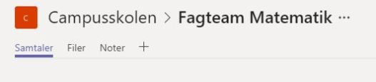Under Campusskolen i venstre side af skærmen finder du Fagteam Matematik. Når du er i vores team, skal du lægge mærke til de tre faner lige under overskriften.