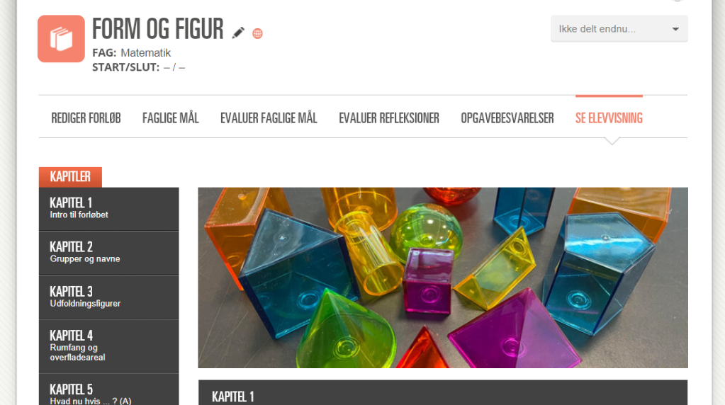 Jeg har delt forløbet i meebook i ShareIT. Det hedder Form og figur. Du kan hente en kopi ned til din klasse og rette til eller plukke ud, lige som det passer dig. Det er tænkt som inspiration til at tage fat på det nye materiale.